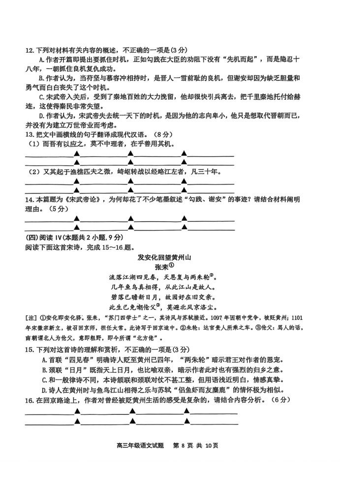 猜你喜欢 江苏盐城市2026学年高三上学期10月月考语文试题 25-10-28 安徽省部分学校2026学年高三10月考试语文试卷 25-10-28 广东省大湾区2026届高三上学期10月联考语文试题 25-10-24 2025甘肃高考语文试题估分方法 附权威解读及评分标准(全国二卷) 25-06-09 2025河北高考语文试题估分方法 附权威解读及评分标准(全国一卷) 25-06-09 2025新疆高考语文试题估分方法 附试卷评析及难不难(全国二卷) 25-06-09 2025湖南高考语文试题估分方法 附权威解读及评分标准(全国一卷) 25-06-09 2025广西高考语文试题估分方法 附权威解读及评分标准(全国二卷) 25-06-09