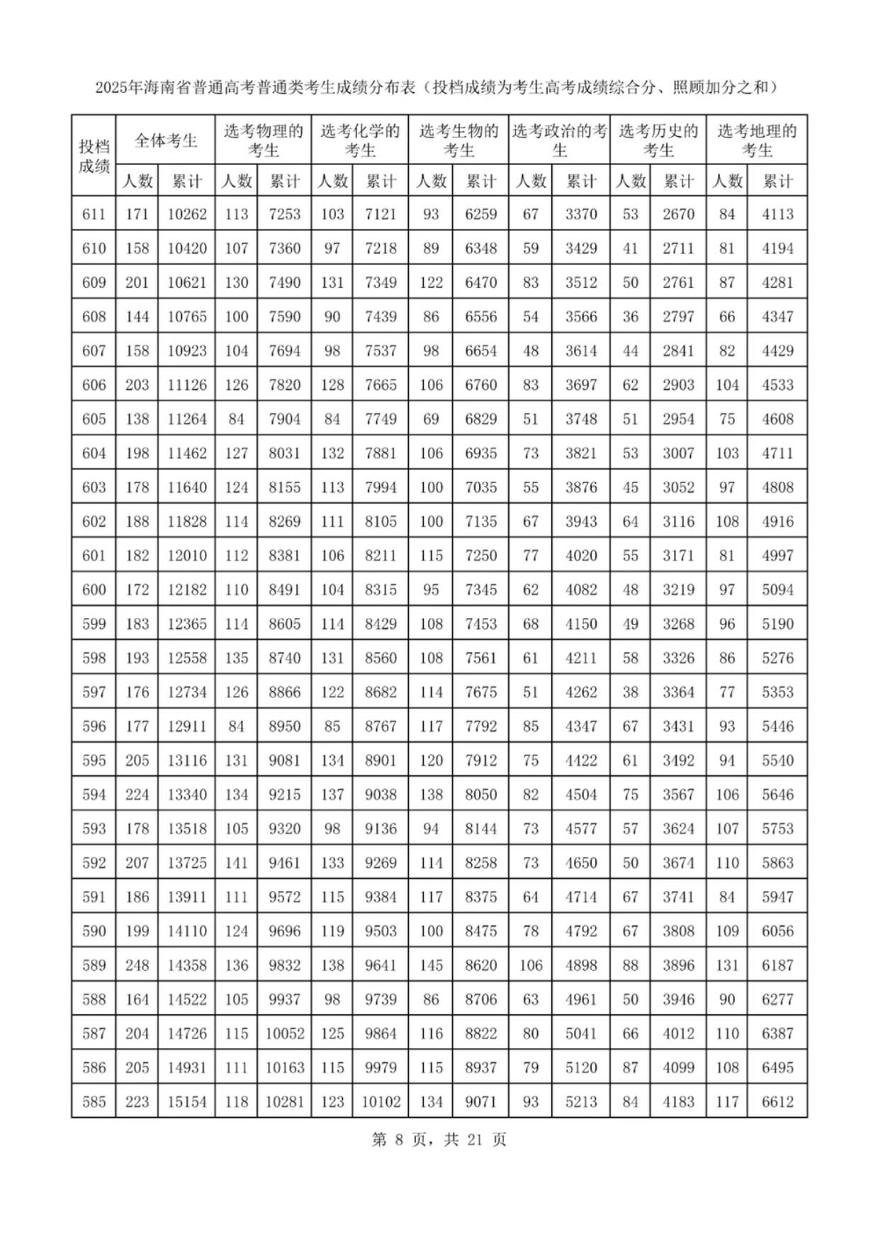 一分一段表以“1分”为单位,统计每个分数段的考生人数和累计人数,高考考生可以通过该表找到自己的排名和所在分数段的人数。这一排名信息是高校录取的重要依据,因为高校通常根据考生的排名而非具体分数进行录取。小编整理了海南2025年高考一分一段表,供2026考生参考。