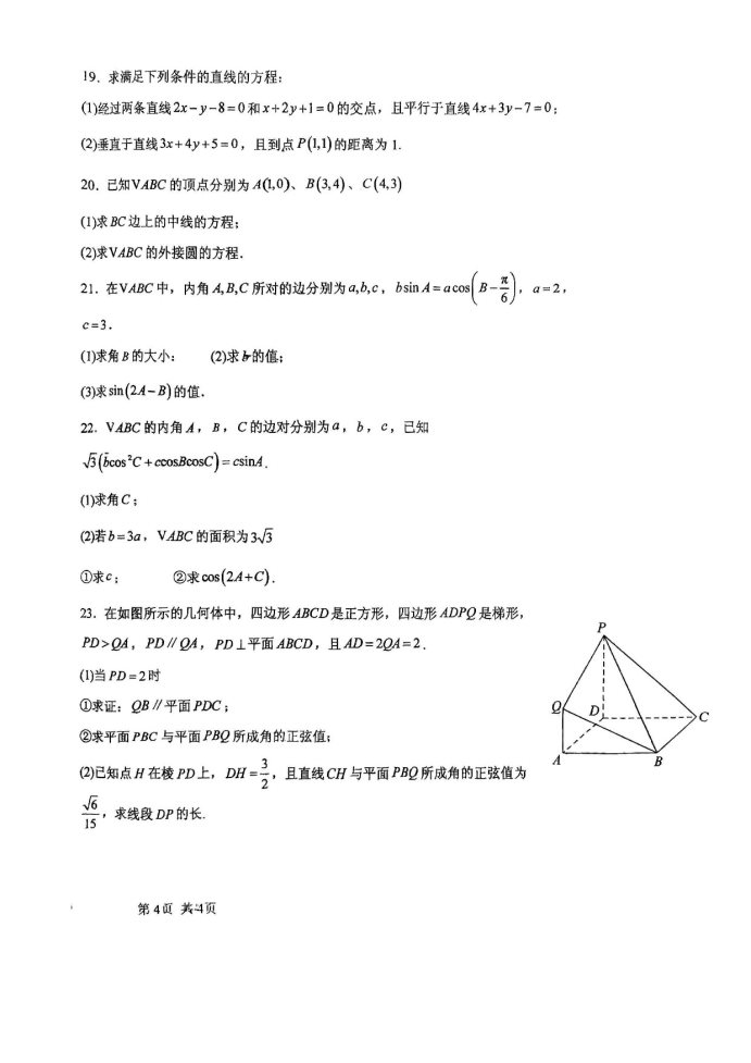 依兰县高级中学2026学年高三上学期10月月考数学试卷