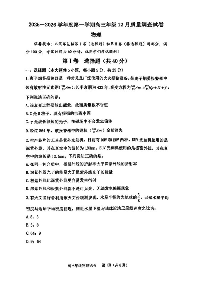 猜你喜欢 天津市汇文中学2025-2026学年高三上学期月考物理试卷 25-12-25 2026百师联盟高三一轮复习12月质量检测化学试题及答案解析 25-12-20 2026百师联盟高三一轮复习12月质量检测生物试题及答案解析 25-12-20 宿迁中学2025-2026学年高三上学期12月物理周测 25-12-18 2026届上海市闵行区高三上学期(一模)物理试卷 25-12-18 2026湖南炎德英才长郡二十校联盟高三12月联考生物试题及答案解析 25-12-12 2026湖南炎德英才长郡二十校联盟高三12月联考物理试题及答案解析 25-12-12 南开大学附属中学2026学年高三上学期月考生物试卷 25-12-11