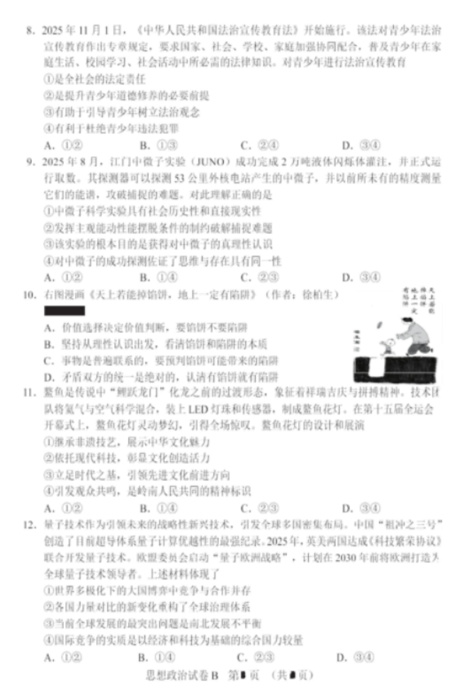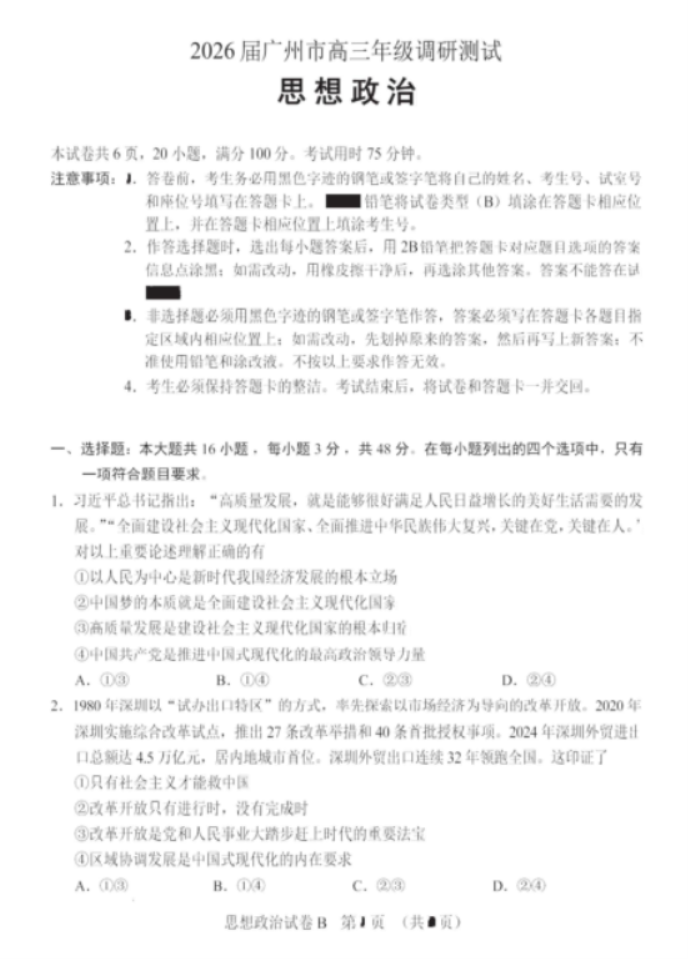 猜你喜欢 广州零模2026届高三12月调研测试政治试题 26-01-06 湖北2026届高三第一次八省联考(T8联考)政治试题及答案解析 26-01-04 2026届高三T8联考(八省联考)地理试题及答案解析 26-01-04 2026届高三第一次八省联考(T8联考)历史试题 25-12-26 2026届安徽A10联盟高三上学期11月期中质量检测政治试题及答案解析 25-11-22 2026届安徽A10联盟高三上学期11月期中质量检测历史试题及答案解析 25-11-21 2026届高三华师联盟10月质量检测考试历史试题及答案解析 25-11-14 2026届高三华师联盟10月质量检测考试地理试题及答案解析 25-11-13
