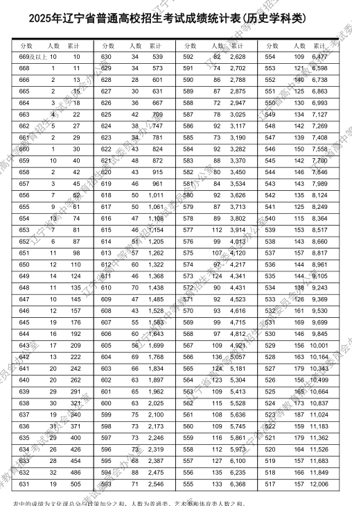 2025辽宁高考历史类一分一段表:
