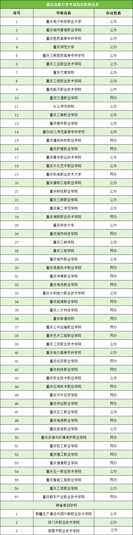以上名单排名数据仅供参考。重庆高职分类考试的学校排名通常基于综合竞争力、社会声誉或招生数据,但不同来源的排名标准可能不同,因此结果会有所差异。